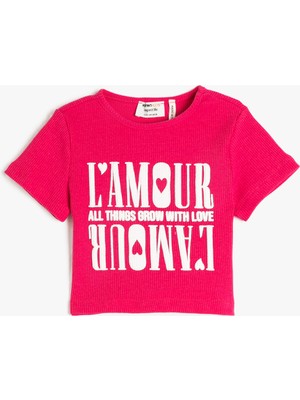 Koton Crop Tişört Kısa Kollu Baskılı Bisiklet Yaka Fitilli