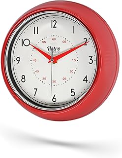 Ürün Adı : New-Max Premium Serisi Retro Tasarım Metal Kadranlı Bombeli Cam Özellikli 30 cm Ev ve Ofis Saati Kırmızı, 30cm