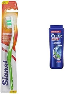 Signal Performans Diş Fırçası, 14,5 Gr ve Clear Men Erkek Şampuan Cool Sport Menthol Kepeğe Karşı Etkili 600 ml