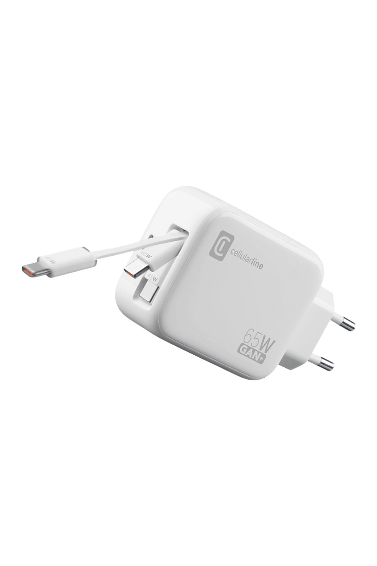 Cellular Line CELLULARLINE Gan 65W Dual 90 cm Dahili Type-C Kablo Duvar Şarj Cihazı Beyaz
