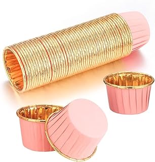 Dolphin 25li Muffin Kalıbı - Cupcake kalıpları, Su Geçirmez ve Yağ Geçirmez Pişirme Kağıtları, Ev veya Parti İçin Alüminyum Folyo Pişirme Kek Kapları -Pembe-Altın