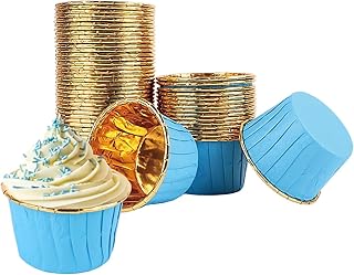 Dolphin 25li Muffin Kalıbı - Cupcake kalıpları, Su Geçirmez ve Yağ Geçirmez Pişirme Kağıtları, Ev veya Parti İçin Alüminyum Folyo Pişirme Kek Kapları - Mavi-Altın
