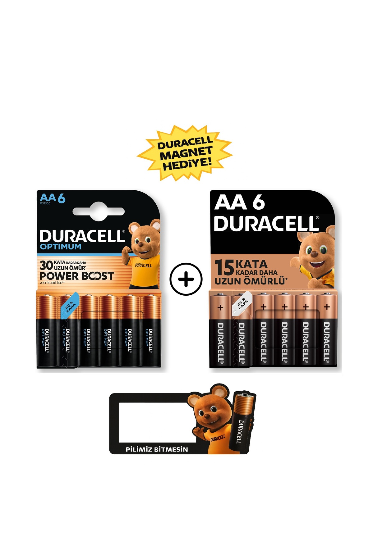 Duracell Optimum AA Alkalin Kalem Pil 6’lı Paket + AA Alkalin Kalem Pil 6lı Paket