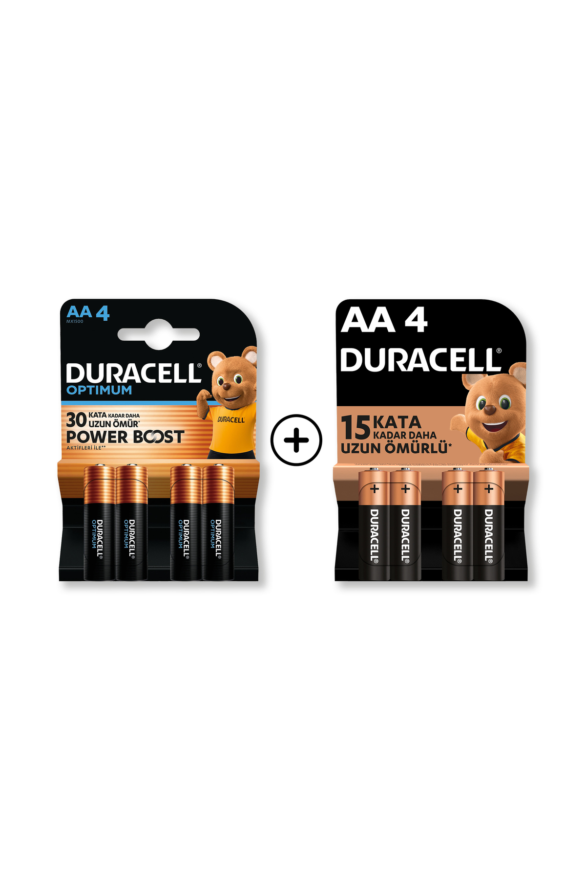 Duracell Optimum AA Alkalin Kalem Pil 4’lü Paket + AA Alkalin Kalem Pil 4lü Paket