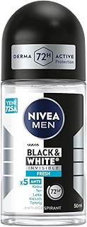 NIVEA MEN Erkek Roll On Deodorant Black&White Invisible Fresh 50 ml,72 Saat Anti-perspirant Terleme ve Ter Kokusuna Karşı Koruma,Giysilerde Leke Karşıtı,Erkeksi Koku,Etil Alkol İçermez
