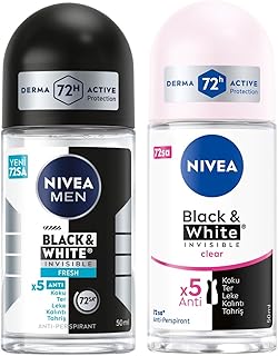 NIVEA Men Erkek Roll On Deodorant Black&White Invisible Fresh 50 ml + NIVEA Kadın Roll On Deodorant Black & White Invisible Clear 48 Saat Anti-Perspirant Koruma 50 ml