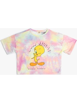 Koton Tişört Tweety Baskılı Lisanslı Kısa Kollu Batik Desenli