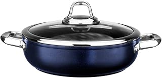 Leggno Master Titanium 24Cm Sığ Tencere, Çelik Kulp, Özel Çerçeveli Cam Kapak Metalik Mavi