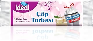 İdeal Büzgülü Beyaz Sabun Kokulu Orta Boy Çöp Torbası 10lu 50x60 Cm, Sızdırmaz & Dayanıklı, Kolay Bağlanabilir, Geri Dönüştürülebilir Çöp Poşeti, Ofis, Restoran, Market, Okul, Bahçe, Mağaza, Fabrika
