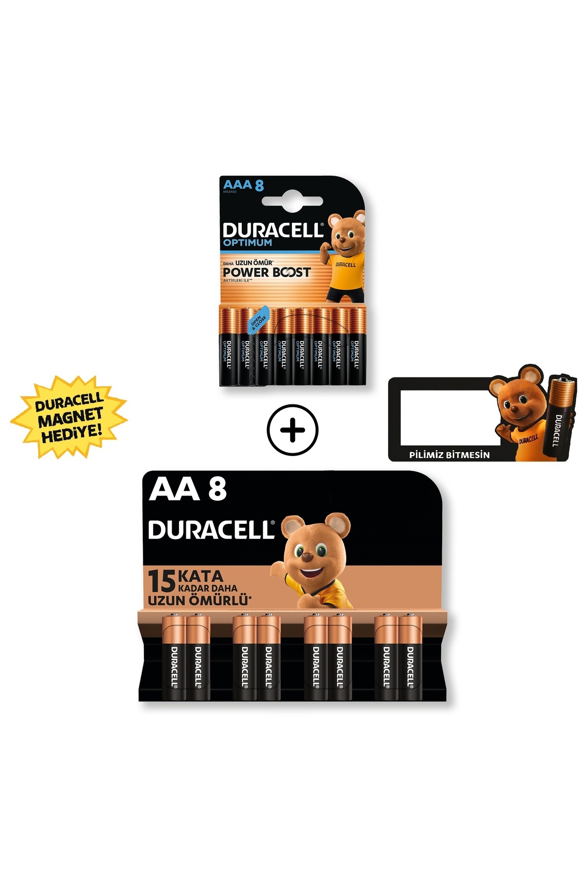 Duracell Optimum AAA Alkalin İnce Kalem Pil 8’li Paket + AA Alkalin Kalem Pil 8li Paket