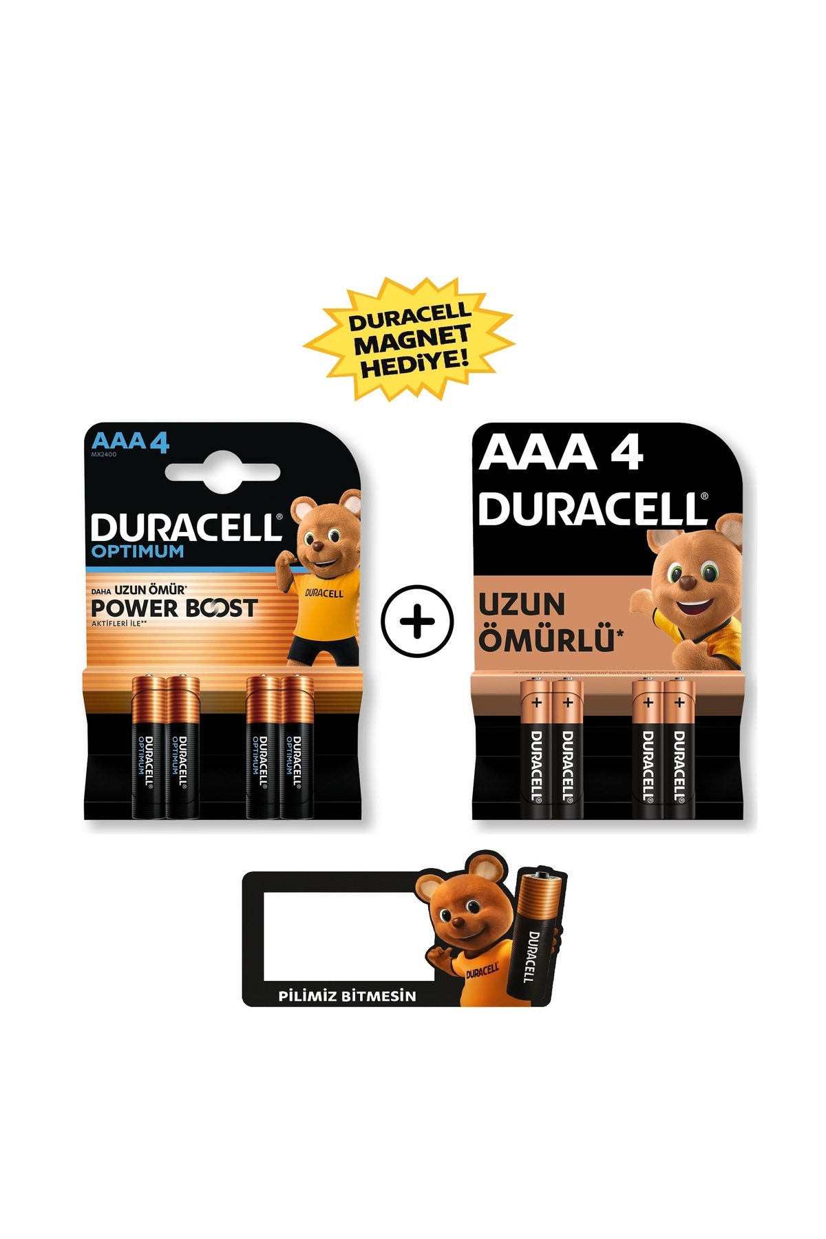 Duracell Optimum AAA Alkalin Kalem Pil 4’lü Paket + AAA Alkalin Kalem Pil 4 lü Paket