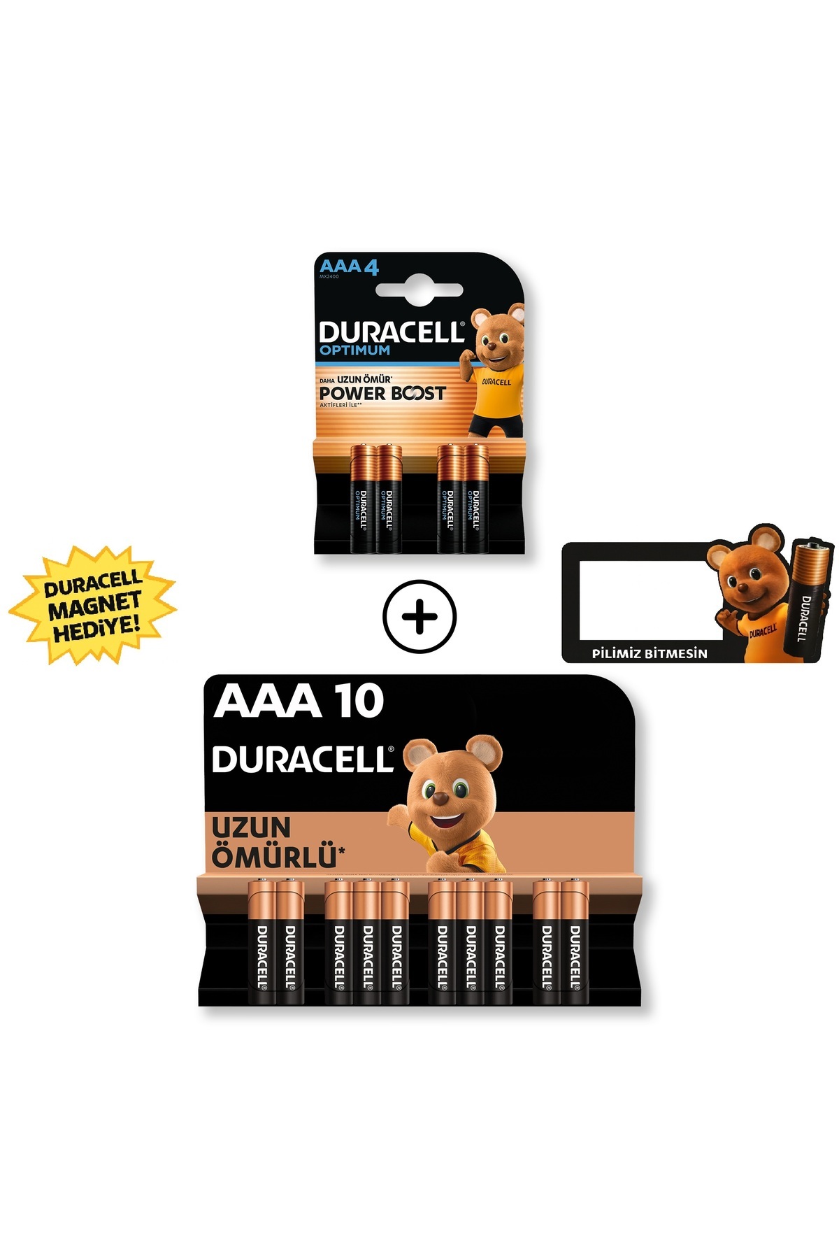 Duracell Optimum AAA Alkalin Kalem Pil 4’lü Paket + AAA Alkalin Kalem Pil 10lu Paket