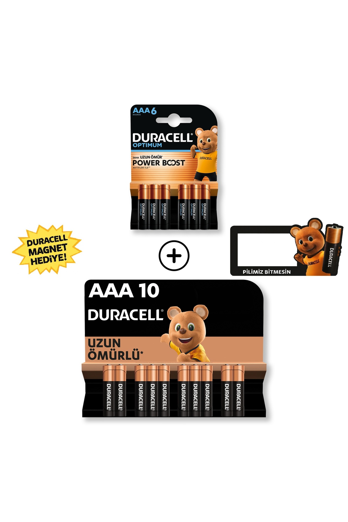 Duracell Optimum AAA Alkalin Kalem Pil 6’lı Paket + AAA Alkalin Kalem Pil 10lu Paket