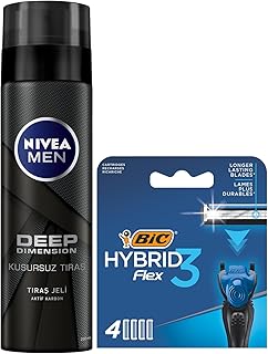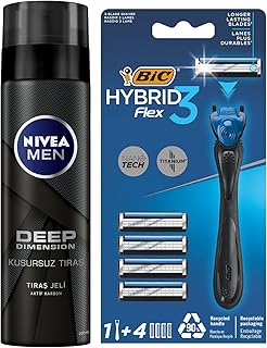 NIVEA MEN Erkek Tıraş Jeli Deep Dimension 200ml + BIC Hybrid 3 Flex Erkek Tıraş Bıçağı 1 Sap ve 4 Yedek Başlık (3 Bıçak)