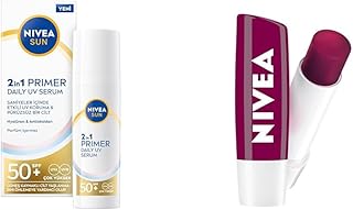 NIVEA SUN SPF50 Primer Nemlendirici Makyaj Bazı 30ml ve Böğürtlen Nemlendirici Dudak Kremi ve Parlatıcısı